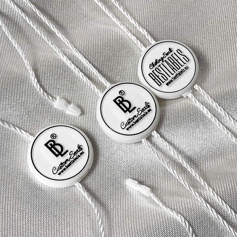 Plastic seal with an elegant design and a round shape ST-M91, can be customized on two sides with the Brand name or the emblem/trademark, and it is ideal for products such as clothes, bags, shoes. Ta vrsta plombe je izdelana iz visokokakovostnih materialov z uporabo najnaprednejših tehnologij na tem področju.