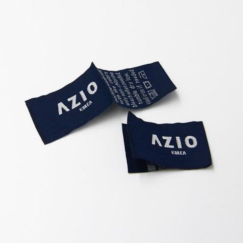 Tekstilna etiketa, prepognjena na sredini, personalizirana z izvezenimi napisi Digital High Density.